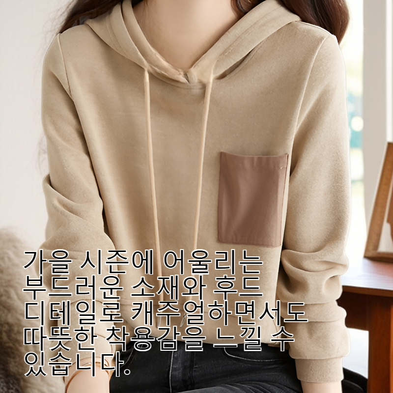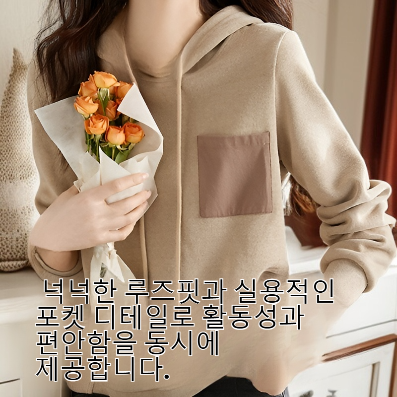 ● 유럽 스타일의 감각적인 패치 컬러 디자인으로 트렌디한 스트릿 패션 연출이 가능합니다. ● 넉넉한 루즈핏과 실용적인 포켓 디테일로 활동성과 편안함을 동시에 제공합니다. ● 가을 시즌에 어울리는 부드러운 소재와 후드 디테일로 캐주얼하면서도 따뜻한 착용감을 느낄 수 있습니다. ● 베이직 티셔츠로 여러 스타일링에 활용하기 좋아 데일리룩으로 추천드립니다.